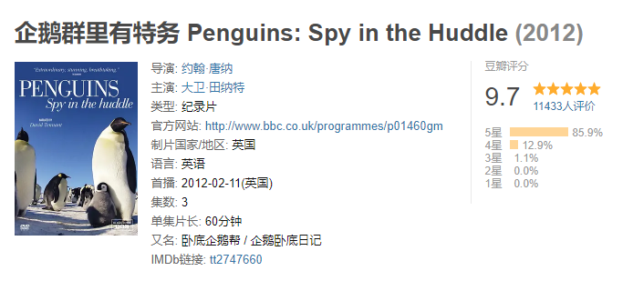 《企鹅群里有特务》,豆瓣评分9.7分。这是一部少有的非常轻快的纪录片。
