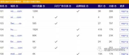 重点说下最后一个,相比其他两个,有店铺SEO流量数据指标,依据这个指标可以找到国人做爆款的店铺。爆款店铺的最大特征是,一般都是不做SEO以及没有品牌,完全依赖广告去推广店铺产品发展。