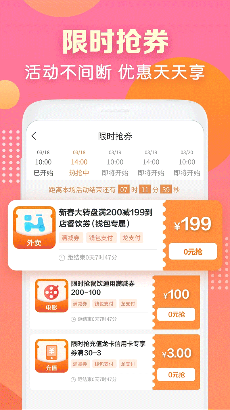 下载“建行生活”APP,只要用手机号完成注册登录,用户不仅可享受吃喝玩乐一站式服务,更能享受多重福利。新用户注册登录可领取百元新人大礼包。四季度至年末,“建行生活”APP每周设置22个常规活动,投放近千张餐饮、商超等优惠券。同时还设有23个本地“节庆”活动,总计投放优惠券数千张,优惠金额达几十万元。