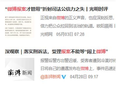 这种似曾相识的局面,让我想起最近有个词叫“微博报警”,说的就是正常报案得不到进展,只能靠发微博聚焦舆论,来引起警方重视。
