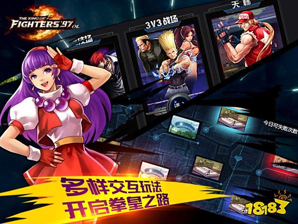 在这个世界当中你可以挑选的角色都是以前在战斗场上发光的明星人物哦,拳皇世界中的自由背景在这款游戏中被设置成了一个超具未来感的梦幻都市。