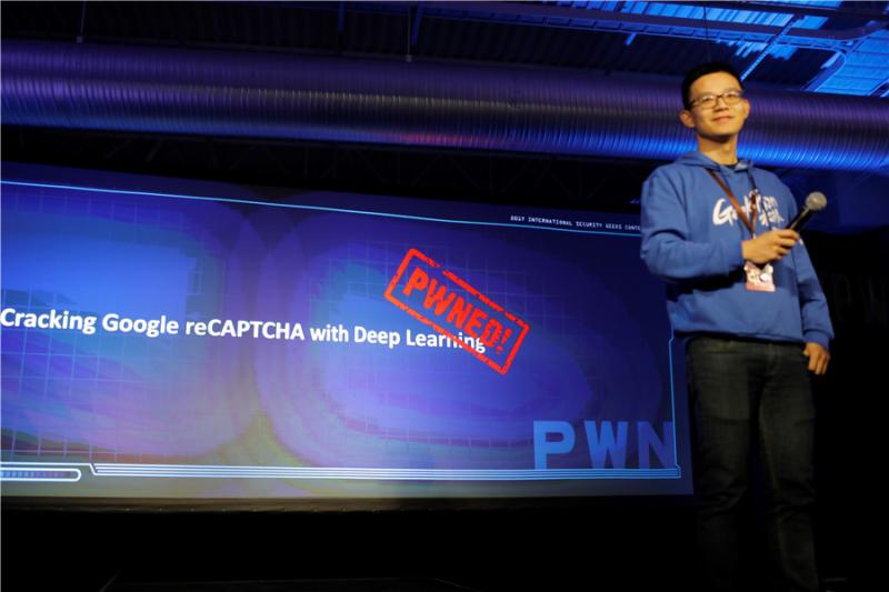 “一开始,我们只是对人工智能感兴趣,想试试看它到底是怎么回事儿。后来的发现让我们惊喜,我们居然能用人工智能的方法去攻破人工智能本身。”李伟告诉记者,他们利用了开源人工智能深度学习框架,并用人工标记的方式让模型“学习”了1000张Google reCAPTCHA验证码的图片后,训练出了一个能够自动预测并识别验证码图像的“机器人”。借助这个“机器人”,他们在场上用极短的时间就成功“骗过”了Google reCAPTCHA的安全系统。