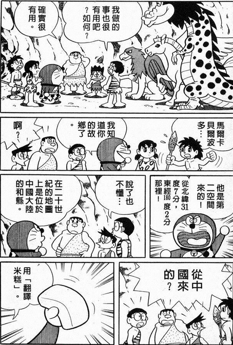 让我们先从一个没什么人注意的细节开始:原版中大雄一行人碰上了被时间乱流吸到现代日本的原始人古古儿,并且哆啦A梦通过时光波动的观测发现他原本居住在7万年前现在中国安徽和县的位置。