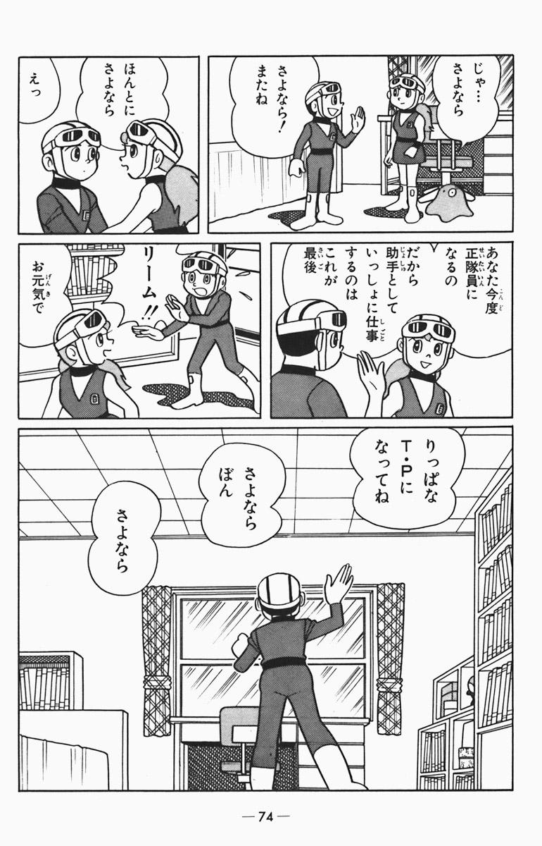 《T.P时光特警》第3卷第2话,男主角并平凡由预备队员升格为正式队员,并被解除了与莉姆的搭档关系。这位热情而又体贴的姐姐只能依依不舍地向男主告别,从此两人再也没有见面。这是藤子老师笔下最感人的分别场景之一,对读者来说也留下了一个很大的遗憾。(《T.P时光特警》在藤子老师去世前的很多年里一直处于“连载休止”的状态,并没有正式完结,藤子老师由于健康原因始终无法实现重启连载的计划。)这次新日本诞生意外地加了莉姆的彩蛋,让她在中途退场37年后再次登场。虽然只是很短的客串,但她以时光巡逻队长的身份回归,手下有一名很像是当年的男主角阿凡的队员,实在是个令人感动的惊喜。