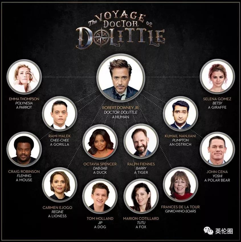 “妮妮”在片中扮演能和动物交流的DOLITTLE博士,这和钢铁侠完全不是一个画风啊。。。脏兮兮的卷毛,竟有一些可爱(神经质)。