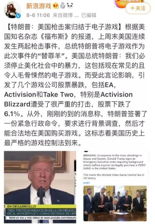 特朗普的解决办法却是:“我们必须停止美化社会中的暴力,这包括现在常见的且令人毛骨悚然的电子游戏。”