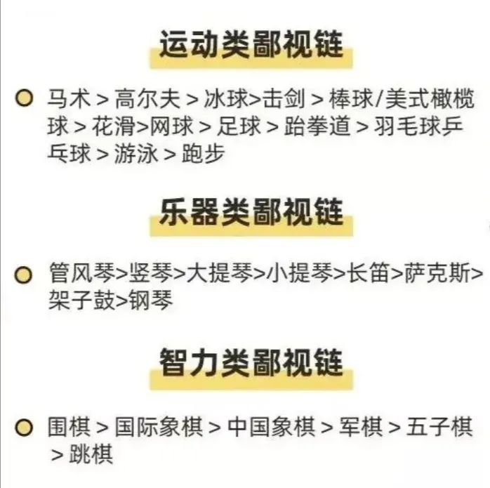 前段时间有个兴趣班鄙视链的话题你有看过吗?就是这张图,非常火。