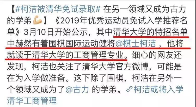 @柯洁:6岁学棋,17岁取得冠军成绩,在普通家庭里,因为围棋逆转,被保送清华;