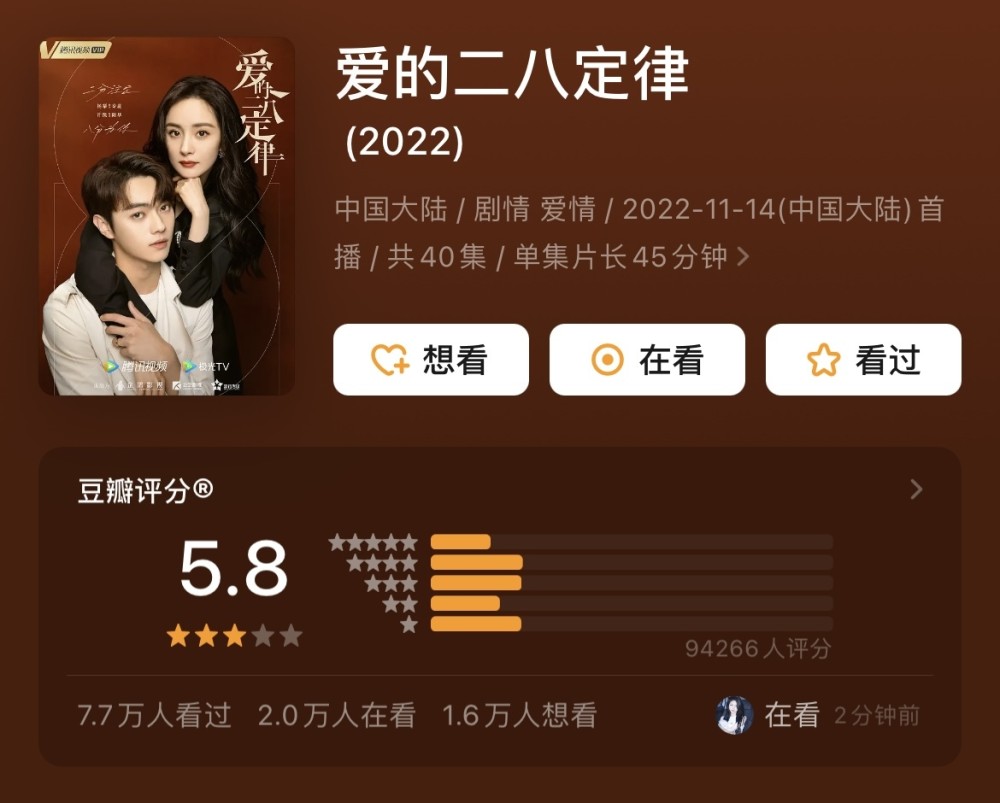 作品开播之后没多久热度就一路飙升,目前在很多平台上这部剧的热度指数都是第一名,8.4分也是近期热播剧中最高的。