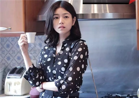 陈妍希的衬衫搭配look,造型简洁,波点图案也很有少女精致感。