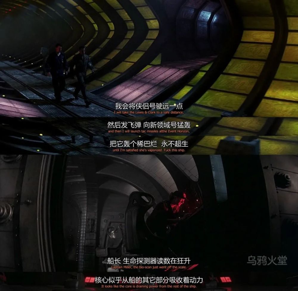 ※第一次是救援队刚上船之后,贾斯汀触发引力推进器,一通冲击波火星四射,好似沉睡的怪物被惊醒后的起床气。