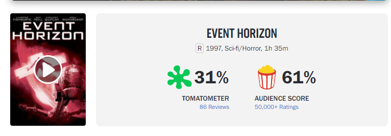 PS,后来该片在科幻迷的助攻下,这部标新立异的作品,口碑还是上去了一些,如今在烂番茄上,观众评价来到了61分(C-)。