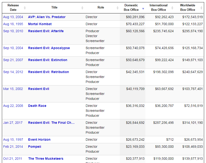也就是说,保罗·安德森自从1995年出道以来,他导演的电影,只要不是改编自电子游戏的,就全部血亏,电玩导演“当之无愧”。