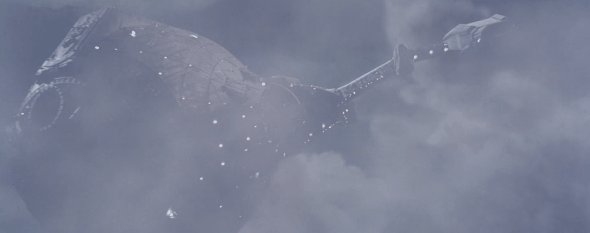 又因为horizon是“地平线”的意思,所以《撕裂地平线》这个片名的含义,直接剧透了结尾——“新领域号”被炸成了两段。