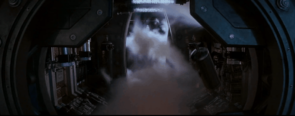 观众可以把飞船当成活生生的怪物,救援队进入飞船好比“羊入虎口”——如绞肉机一般的通道好似消化道,三个磁环不停转动的引力推进器,就是跳动的心脏;其免疫系统便是唤起“入侵者”内在罪孽的幻觉,然后加以一一残杀。