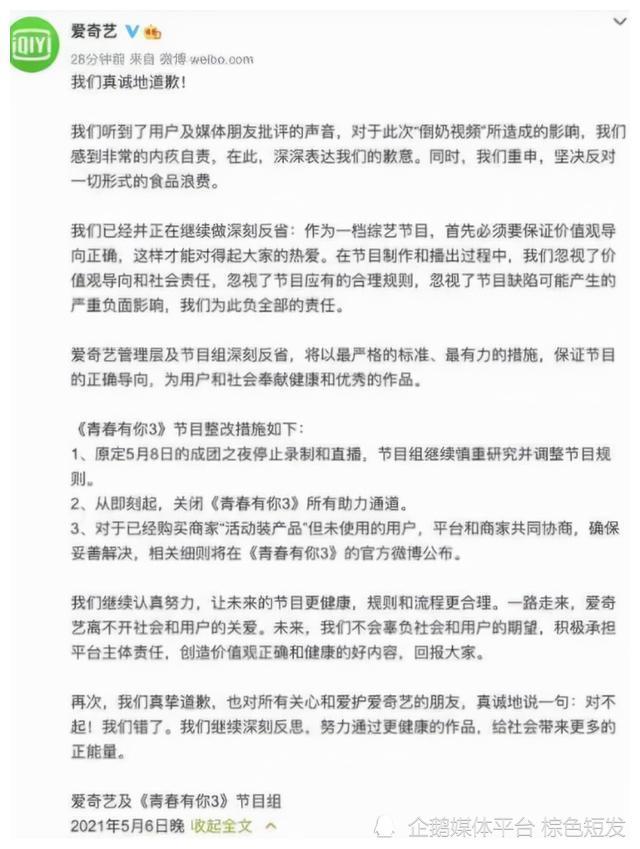 随着事情在网络上逐渐发酵,节目组在网上发布了一篇