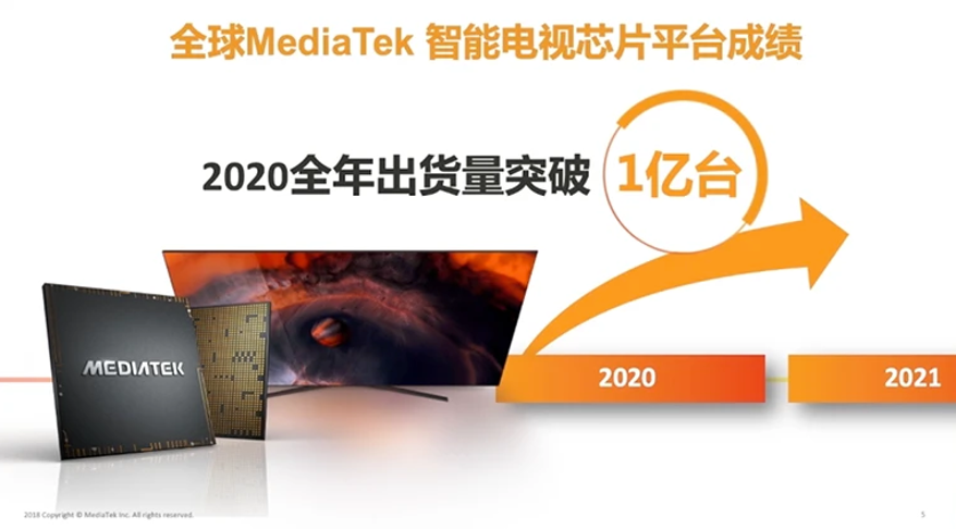 联发科智能电视芯片平台2020年达成了出货量1亿台的优秀成绩(图/网络)