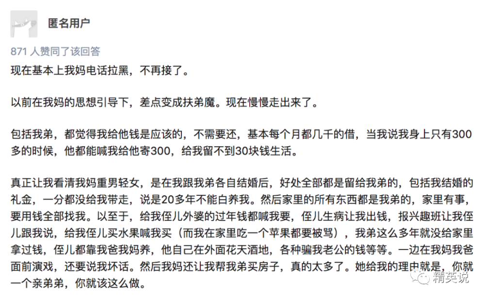 知乎上有一个问题是“那些重男轻女中的女生,后来怎么样了?”上千个回答,每一个回答背后,都是对亲情的痛心和失望。