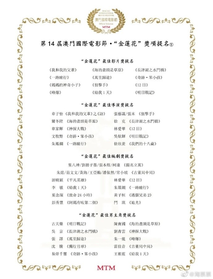 最终哪些影人和影片能够获奖,12月颁奖典礼见分晓吧!