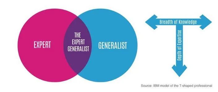 所以,埃隆·马斯克被公认为是顶级的“专家型通才”的代表,也就是大家提到的“T”型人才(T-Shaped),指的是既具备横向宽广的通用才能,也有垂直纵深的专业本事。不仅要在横向上具备比较广泛的知识修养,而且在纵向的专业知识上具有较深的理解能力和独到见解。