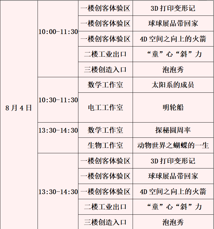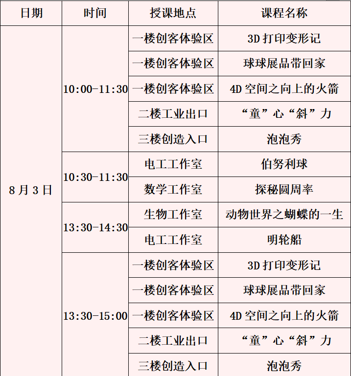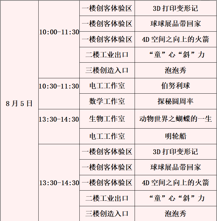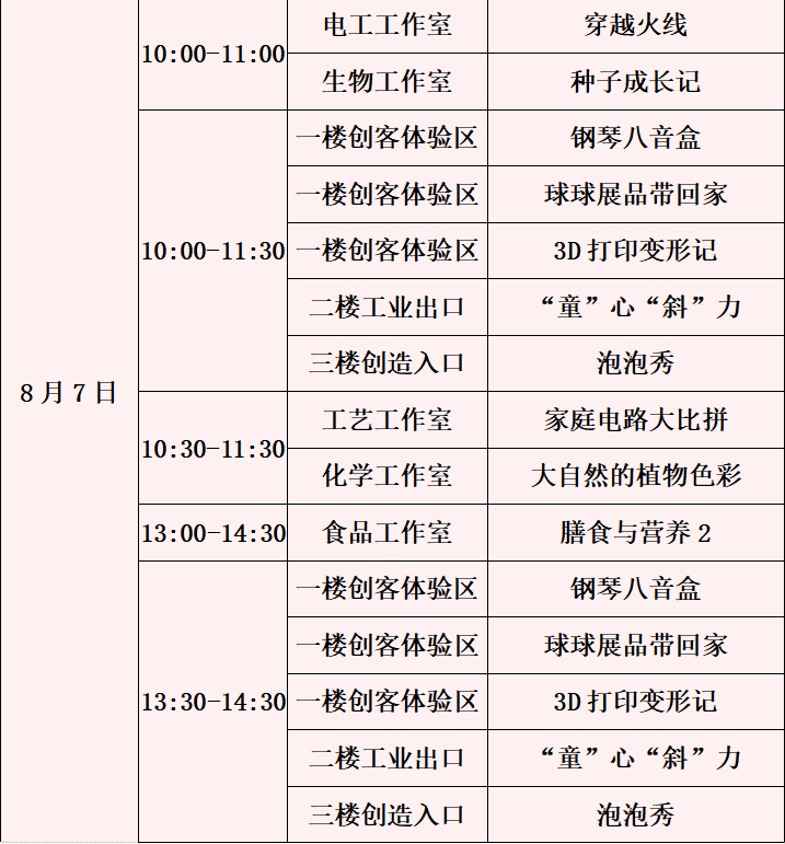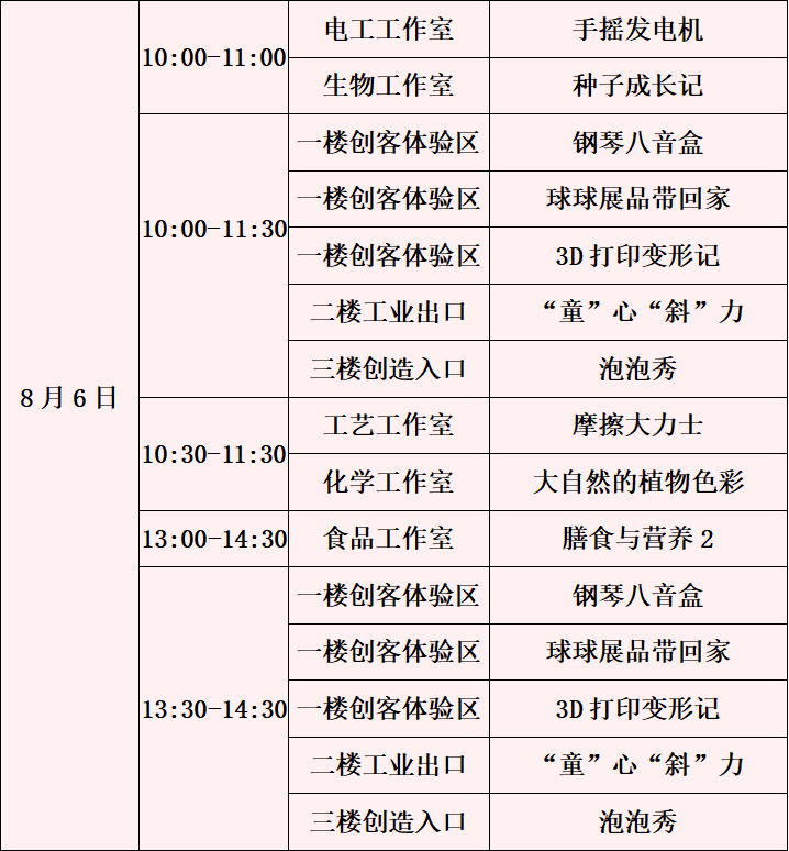 辽宁省科技馆科学工作室“匠心课堂”2022年8月第1周活动安排