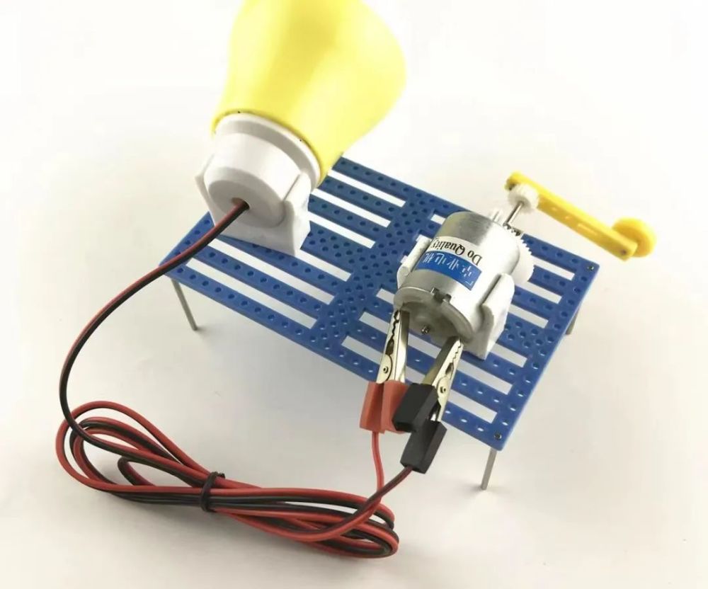 课程简介:现在的同学们肯定想不通,黑咕隆咚长夜漫漫的日子是怎么熬过来的,其实几十年前或者更早几年的乡村,普遍都还没有牵上高压电。人们走夜路靠手电筒或者马灯,家里照明用煤油灯,惯用的是那种有玻璃灯罩的美孚灯,既美观又可以挡风,图省钱也可以自制,大多拿万能胶罐子或者药瓶子的盖子钻一个洞,找点铝片圈好棉芯,一盏简易的煤油灯就做成了。在我们的生活中很多东西会用到电,如果没有电会怎样?今天我们就来一起利用电磁感应现象制作一个手摇发电机。