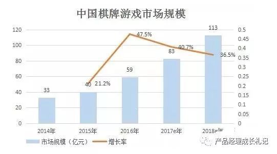 上图为中国棋牌游戏市场规模,可以发现,中国棋牌市场规模自2014年来一直稳步增长。