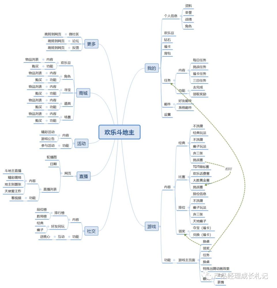 从上面的结构图不难看出欢乐斗地主除了游戏玩法上的创新以外,还根据现今的娱乐动向对增添了许多新颖的内容来增加用户的忠诚度,比如直播、比赛、排位、社交等。