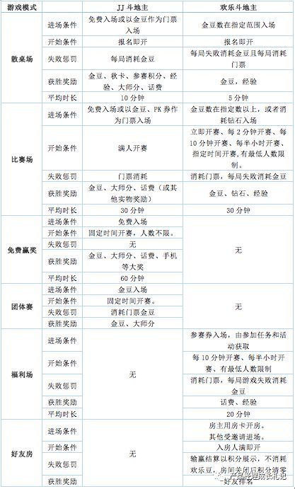 由上图可以看出,JJ斗地主和欢乐斗地主的游戏模式有很多的相同点,尤其是比赛场和普通场,通常都是消耗一定豆子进入场内,每局无论输赢都会消耗一定量的豆子,不同场次每局消耗的豆子数量不同。