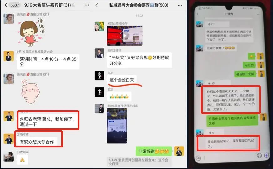 家人们,我们2021私域品牌大会圆满结束了,在疫情面前,今年第一次举办的千人大会居然能够座无虚席,非常感恩大家的支持,现场二十几位嘉宾在一天时间内轮番上台,分享私域、品牌、直播、全域增长体系等方方面面的实战经验,链接资源,有嘉宾反馈流程紧密干货轰炸到无法喘气儿。