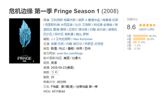 剧勉强还算是小众,本剧第一季豆瓣上也仅仅2万多人评分。