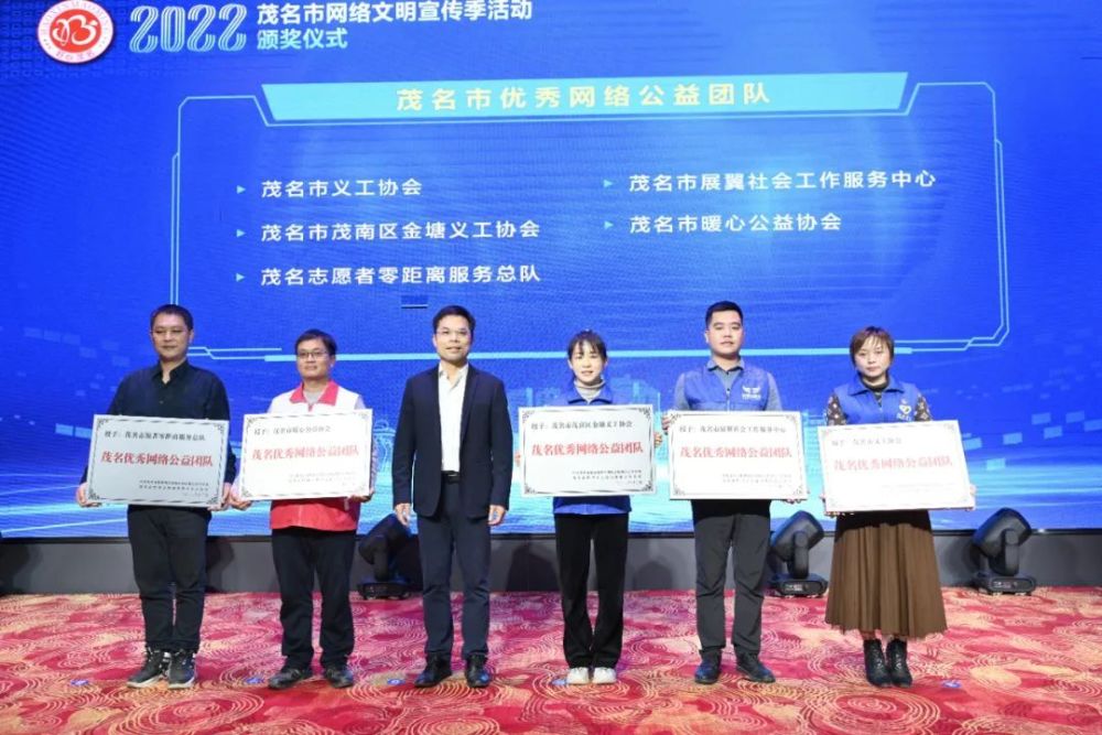 市文明办代表人员为“茂名市优秀网络公益团队”获得者颁奖