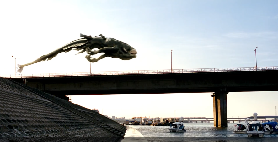 影片表层故事,讲的是因为美国科学家大量倾倒化学品,导致汉江中诞生了一只可怕的怪物,它抓走了男主强斗的独生女儿玄瑞,一家人求助无门,只得踏上自己救寻孩子的道路。