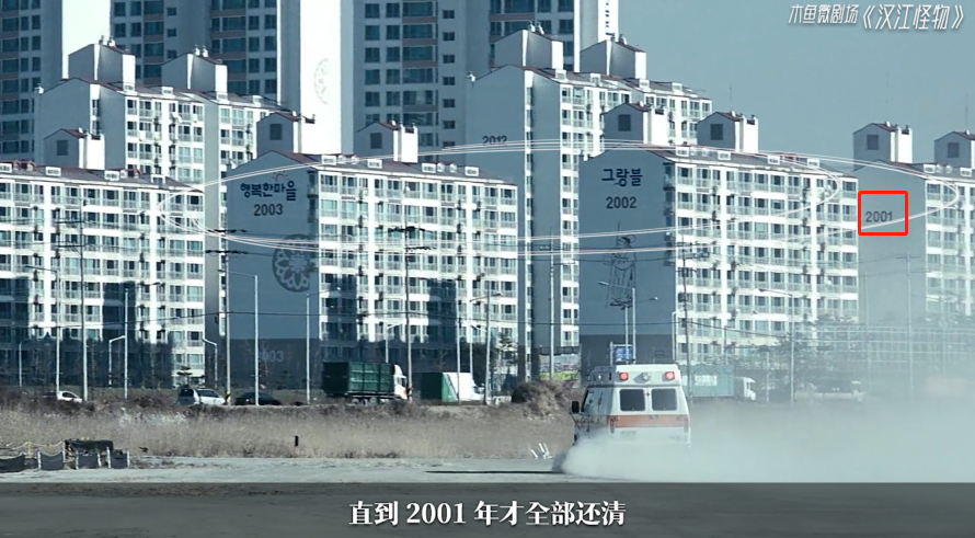强斗在被面具男抓住后,逃跑时的楼房号,刚好是2001,2002,2003,非常像是年代,这正对应了韩国自从1997年借了IMF的钱以后,直到2001年才全部还清。此后、韩国经济才逐渐恢复。