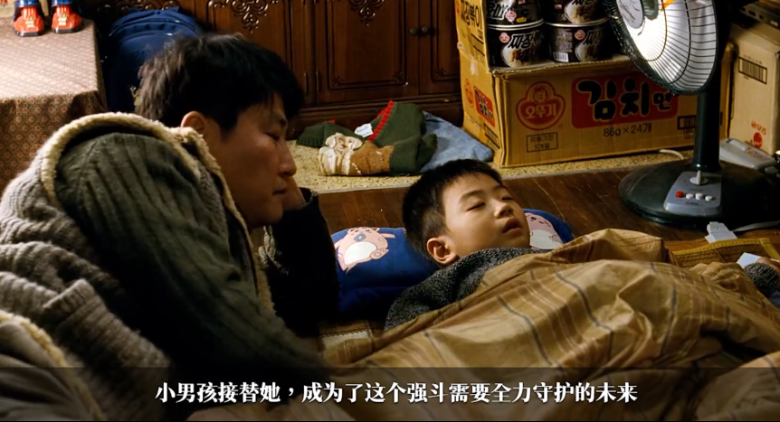 小男孩接替她,成为了强斗需要全力守护的未来。