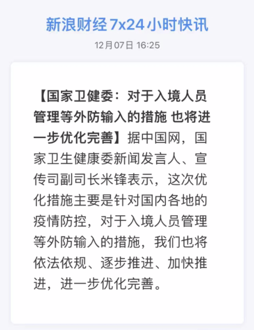紧接着,国家卫健委还透露,入境措施也会优化!