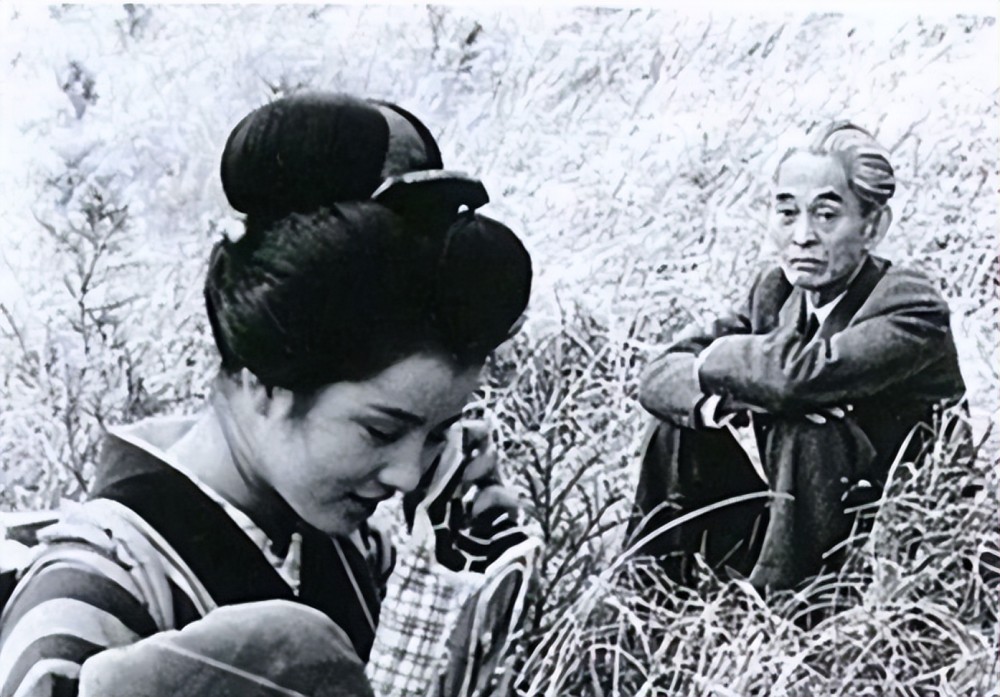 当时年仅18岁的吉永小百合身上有着纯洁无暇的初恋感,在拍摄期间,64岁的老作家川端康成特意跑到剧组看她,留下了一张经典的照片,席地而坐的川端康成目不转睛的注视着远处的吉永小百合。