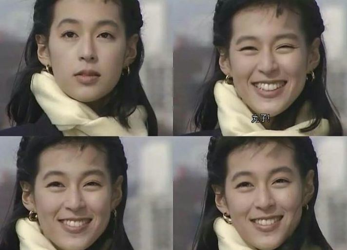 其实铃木保奈美,美就美在她甜美治愈的笑容,微微露出的小虎牙,弯弯的眼睛,超饱满的卧蚕,让这张脸积攒了甜度。因而也就融化了观众的心,可以说是早期的甜妹代表。