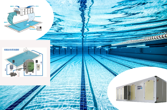 恒温恒湿设备:不管是冬季还是夏季,室内游泳池的问题就是空气潮湿,易结露,空气质量不佳等问题,周围的墙体,柱子,屋顶等出聚集水汽或水珠,不仅造成环境不舒适,而且容易腐蚀室内墙体和装饰,影响室内泳池使用年限。这就需要用到普派克恒温恒湿设备,它是集加热,除湿,空调功能于一体的设备,通过回收利用泳池中蒸发的水蒸气,然后利用水蒸气的热量给空气加热,并给池水回暖,同时可以达到除湿、调节室温内温度和池水温度。可将室内空气湿度控制在55%至70%的范围内,具备节能、除湿效果高等优势。