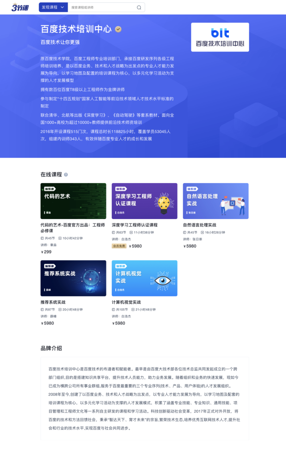 百度技术培训中心已入驻三节课”品牌课程专区“。该系列课程百度官方研发,是原汁原味的“大厂实战课”。