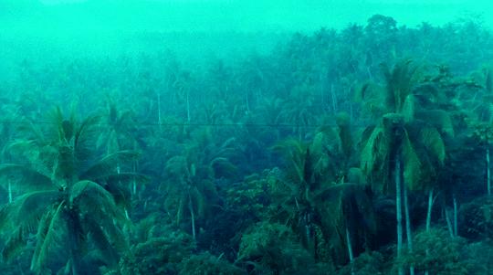 那段拍得相当美,手持摄影,幽蓝的色调,椰子林上空真空一样的寂静。