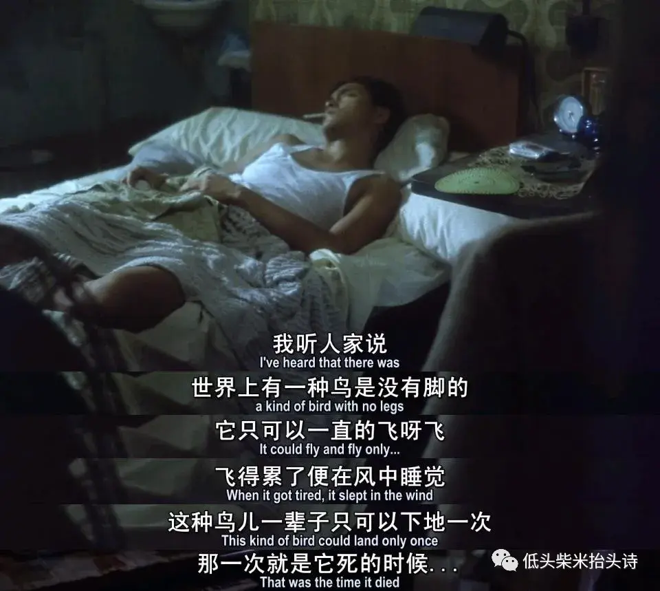 “我听别人说这世界上有一种鸟是没有脚的,它只能够一直的飞呀飞呀,飞累了就在风里面睡觉,