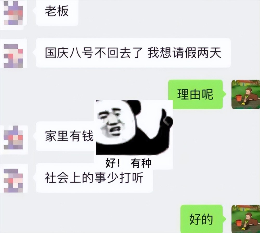但是对于不差钱的00后毕业生来说,假期短不是问题,手动延长就好了,只不过这位同学的辞职理由是真的“硬核”,一句社会上的事少打听,直接让老板哑口无言,风中凌乱。