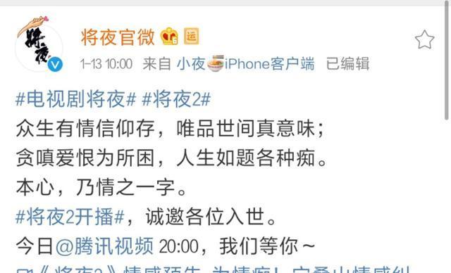 在该剧上映当天之前,剧组依然没有定档,很多观众都处于焦灼的等待之中。出人意外的是在2020年1月13日10点剧组官微突然宣布:《将夜2》将在今晚八点开播。