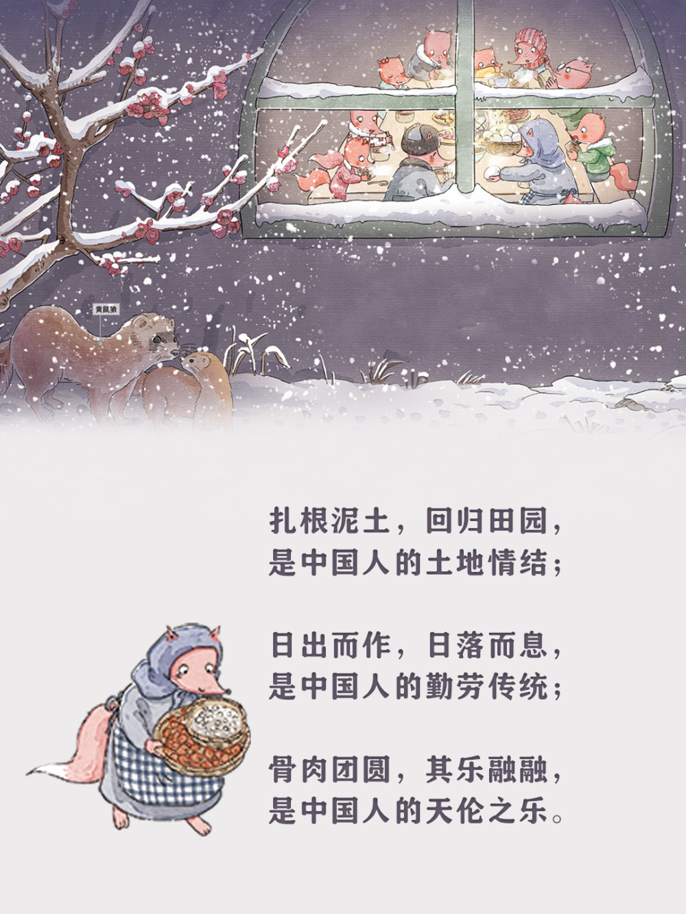哪怕是今天,在城市高楼里长大的孩子,他们也会和父母一起兴致勃勃地看“李子柒”,看《舌尖上的中国》和《向往的生活》,因为那里有“民以食为天”的丰饶、有田园生活的纯粹、还有大家庭的温暖和关怀……无论外部环境如何变化,这些刻在中国基因里的传统,值得被每一代人记得。