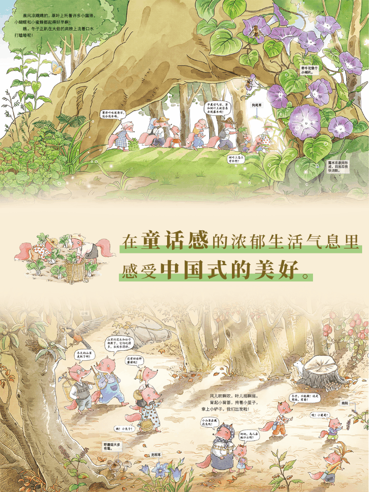 书中有天人和谐的自然之美,也有节令食物的传统之美,孩子们可以跟随狐狸家的脚步,在童话感的浓郁生活气息里感受中国式美好。