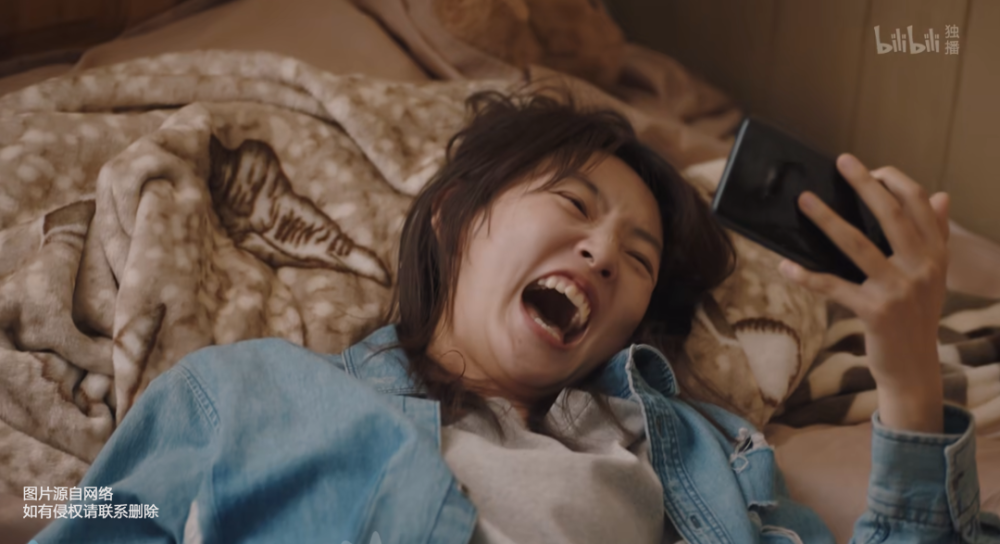 看到女主躺床上玩手机傻笑的样子,感觉有点在演我(们)。