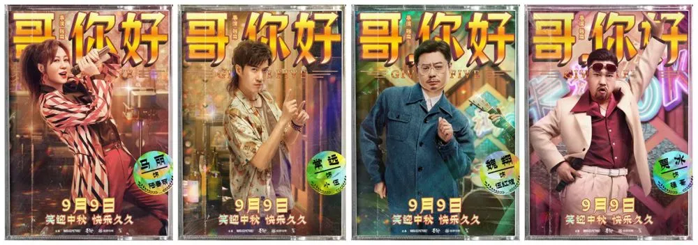 与“爸妈爱上头”版预告一同发布的还有角色海报,主视觉以20世纪80年代歌舞厅背景为主,整体以歌星磁带样式创意呈现,将影片中的复古年代质感瞬间拉满。海报中除了轻松欢快的气氛外,众主创的舞蹈动作也表达出了各角色的性格特点:大六(马丽 饰)动感豪放的动作、小伍(常远 饰)专注笃定的表情、老伍(魏翔 饰)陶醉销魂的姿态、罗阿强(贾冰 饰)浮夸招摇的装扮。