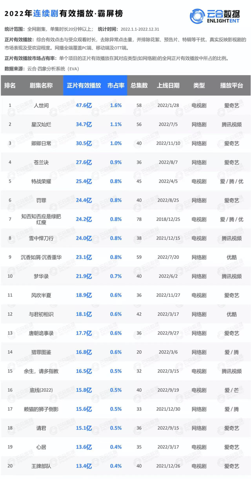 2022年对于国产剧来说是个喜忧参半的年份,前半年因疫情而陷入“开机难”,剧集开机数量大幅减少,让不少人感到揪心。同时,爱优腾芒+B站自制剧开始精耕细作也初见成效,在短视频抢夺用户注意力的时代,各家长视频平台用降本增效、缩短集数、精品化制作、开发核心用户权益、启用实力派演员、挖掘垂类IP等方式补充新能量、寻找新机遇。