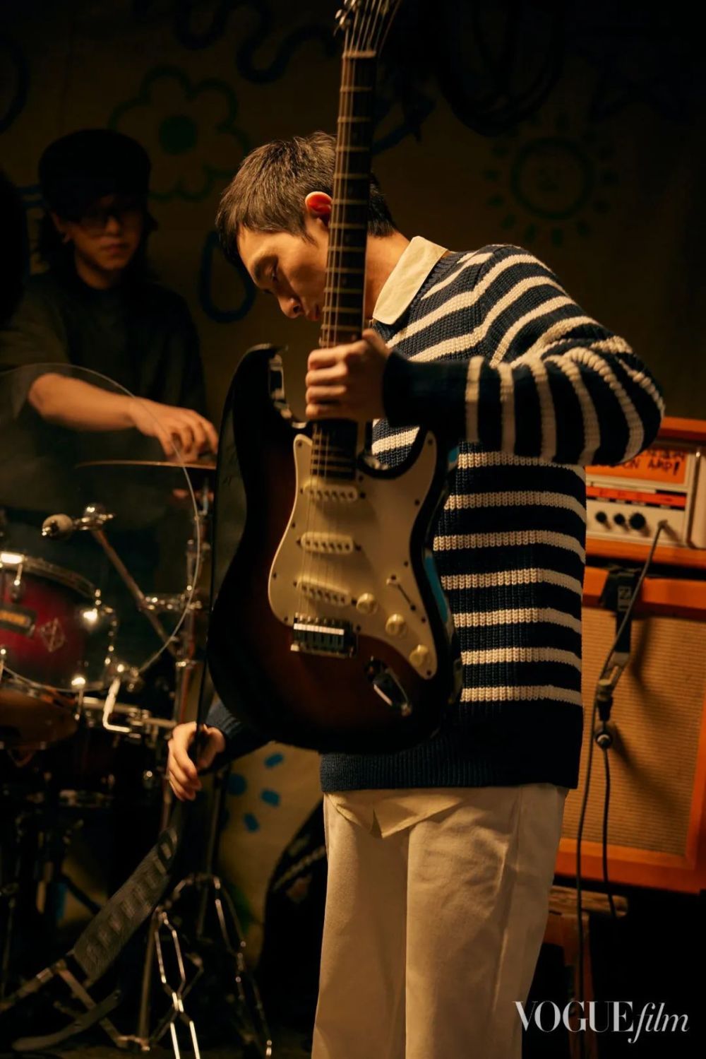 这是白宇帆一直以来的工作习惯。他说自己从2014年正儿八经开始演戏,做过群演,跟过剧组,也当过演员助理,他习惯在导演喊出“Action”之前,尽可能地先把案头功课做足,完成一个演员的本分。进入片场,倘若想要第一时间找到白宇帆,不妨向导演的身边看去,他一准在跟导演聊角色。双方想法交换完毕,他会迅速把心中天秤的准星调了调,让自己准确接近导演的要求。他说,“我印象中的贝斯手是比较飒、比较狂野的,导演说他的性格里有害羞的一面……当男孩遇到自己喜欢的人,还是会展现害羞的一面,狂野和害羞并不冲突。”